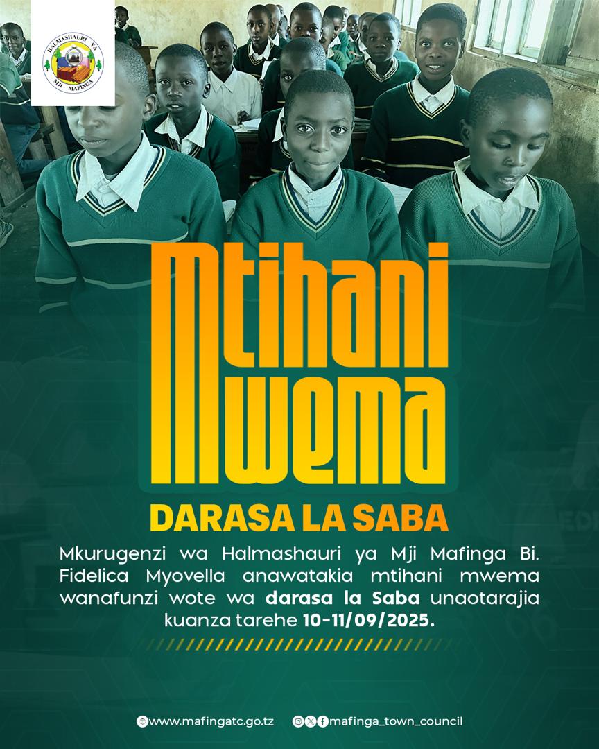 MTIHANI MWEMA KWA WANAFUNZI DARASA LA SABA TAREHE 9-10/9/2025
