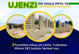 ASANTE RAIS MHE,DKT SAMIA SULUHU HASSAN KWA KUTUPATIA KIASI CHA FEDHA TSH 583,000,000/= KWA AJILI YA UJENZ WA SHULE MPYA YA SEKONDARI NDOLEZI (SEQUIP)....